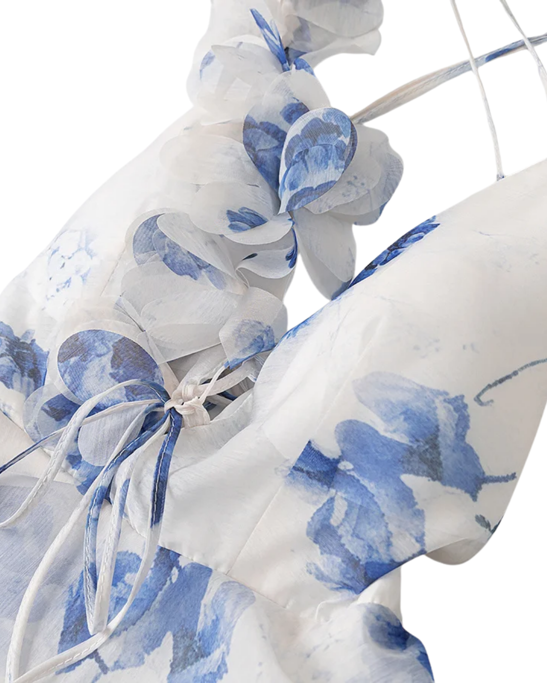 Elevate your wardrobe with the Élodie Blue Floral Ruffle Frill criss cross Backless Strappy Mini Dress, exuding luxury and sophistication. Birthday Party? Dinner? This dress is perfect for special events. Complete your look with this elegant piece.